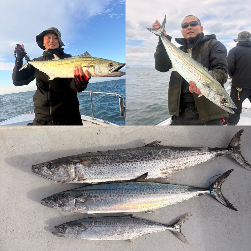 朝から風が強くダバダバ!釣り辛い状況の中、ファーストヒットはサゴシ。更にヒットー!上がってきたのは94cm良型サワラ!ファイト中、糸が絡まり焦りましたが無事にGET👍その後、風が少しおさまって来たので、色々ポイントを回り、ヒットー!良型サワラ追加!ナイスー!全員安打できなかったのが悔しいですが、悪天候の中キープキャストありがとうございました🙇差し入れありがとうございます😊