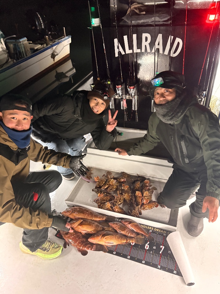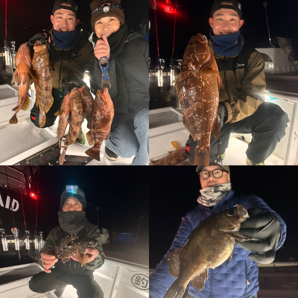 風もなく、寒くもなく釣り日和!魚も高活性でした!ワーム、サバの切り身などで良型カサゴが入れ食い🙌良型メバルも登場!更に、良型キジハタも登場!お一人で5本!お見事です👏後半、女性アングラーさんにも良型ヒット!やったー!親子でキジハタGET👏皆さんお正月用の魚の調達完了。いい釣り納めになりました!ご乗船ありがとうございました!差し入れありがとうございます😊