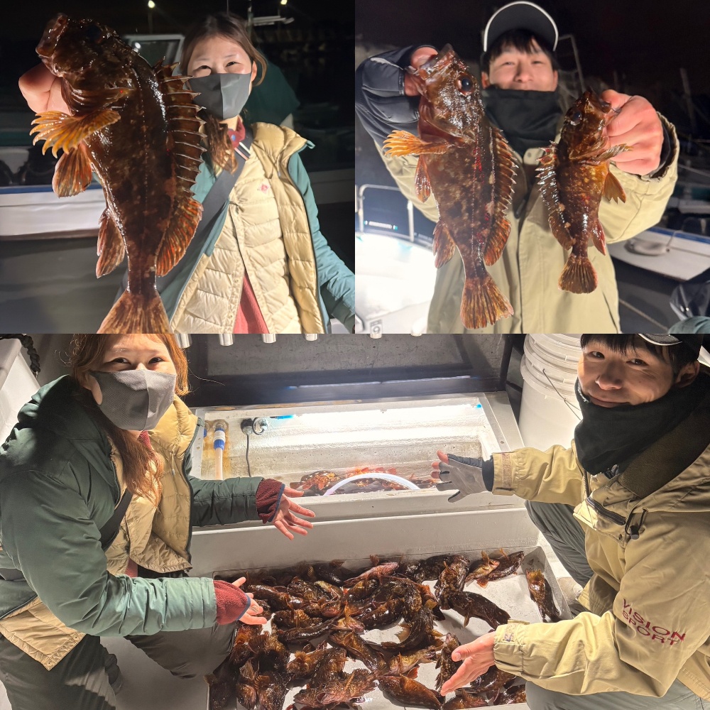 お二人で遊びに来て下さいました!ボートでの根魚は初めてとの事でしたが、女性アングラーさんが㊙︎餌でカサゴ入れ食い!メバルをワームで頑張って狙ってみましたが、今日はお留でした!後半はお二人とも㊙︎餌でカサゴを狙い、良型カサゴ大漁!(小型はリリース)メバルは次回リベンジですね😏今日、少しですがバチ抜けも確認できましたー!春が近づいてきてますね!本日はご乗船ありがとうございした!