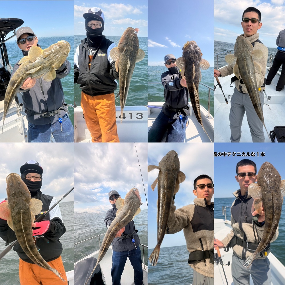今日は東京からマゴチハンターさんが参戦!しかし、朝は濃霧、霧がはれたら強風🥲そんな厳しい状況でしたが、良型マゴチヒット!後半、風が一瞬弱くなったタイミングでもプチ連続ヒット!ナイスー!皆さんのテクニックでマゴチGETできました!ただ全員安打出来なかったのが悔しいです。すいません!またリベンジお待ちしてます🙇♂️風が強い中ありがとうございました!差し入れありがとうございます😊