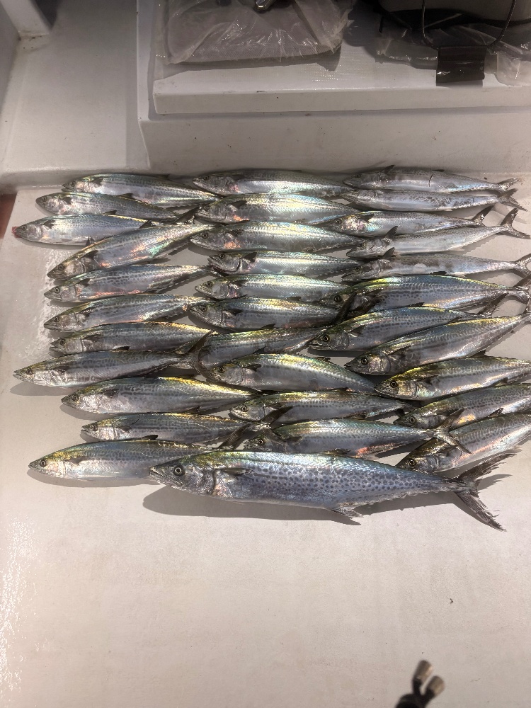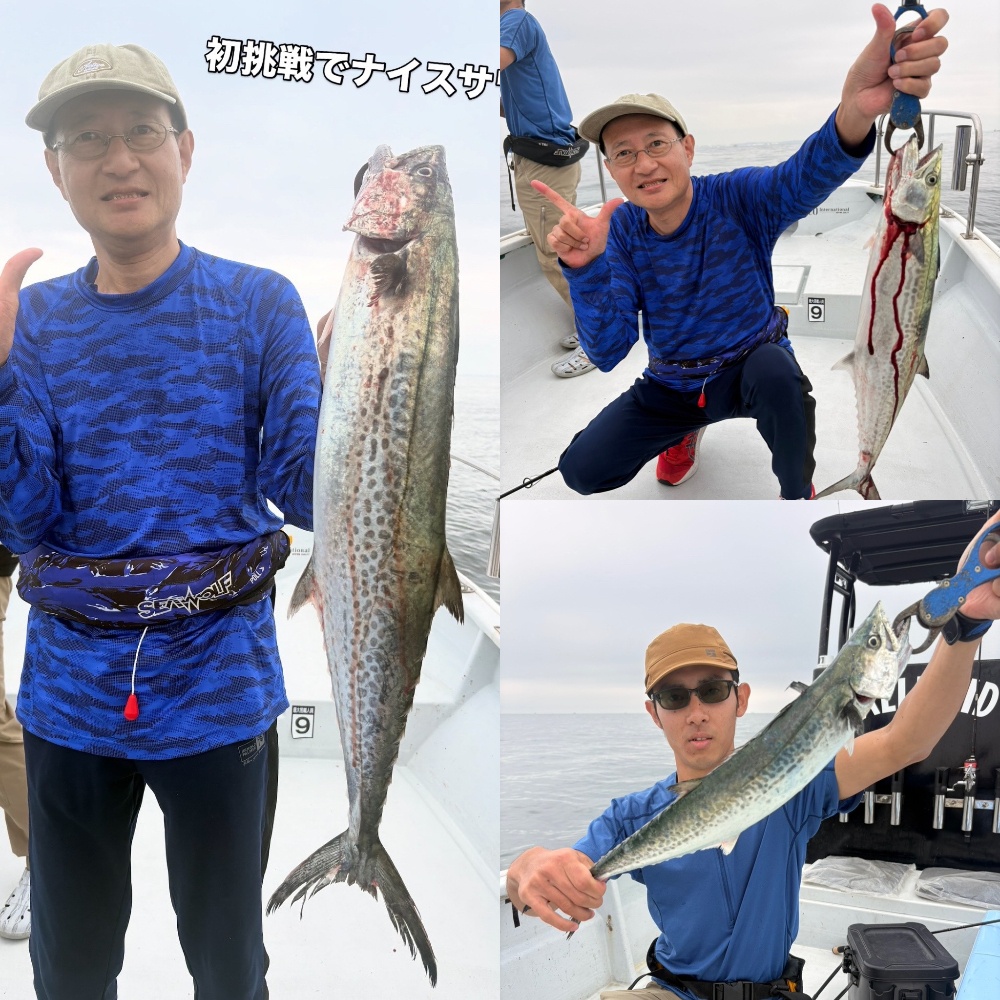 午後 サワラ狙い午後から親子で遊びに来て下さいました!サ族は午後からも絶好調!息子さんが連続ヒットー!お父さんは初挑戦との事だったので息子さんから色々アドバイスをもらい狙っていると、バッチリヒット👏更にヒットー!ドラグジーー!デカい!上がって来たのは良型のサワラ。初挑戦でいいサワラが釣れましたー👍 今までの釣った魚で一番のサイズとの事でした。おめでとうございます㊗️その後も、良く当たり、満足の釣果となりました。ご乗船ありがとうございました🙇