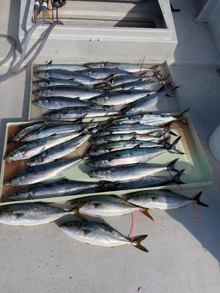 サワラ狙いゲストさんの都合で朝はゆっくりスタート!アオリイカとサワラを狙う予定でしたが、風が吹く予報だったのでサワラ1本勝負に変更✋スタートから、ツバスGET!ただ途中からシイラばかりになったので移動!移動したポイントで、当たり連発、ミノー、ブレードジク、シンペン等、色々なルアーでヒット!初ボートの方もバッチリ釣られてましたー!なんなら一番釣ってました🤣そして今日もしっかり船内血まみれ🤣サ族好調です‼️写真を撮り忘れましたが差し入れありがとうございます😊