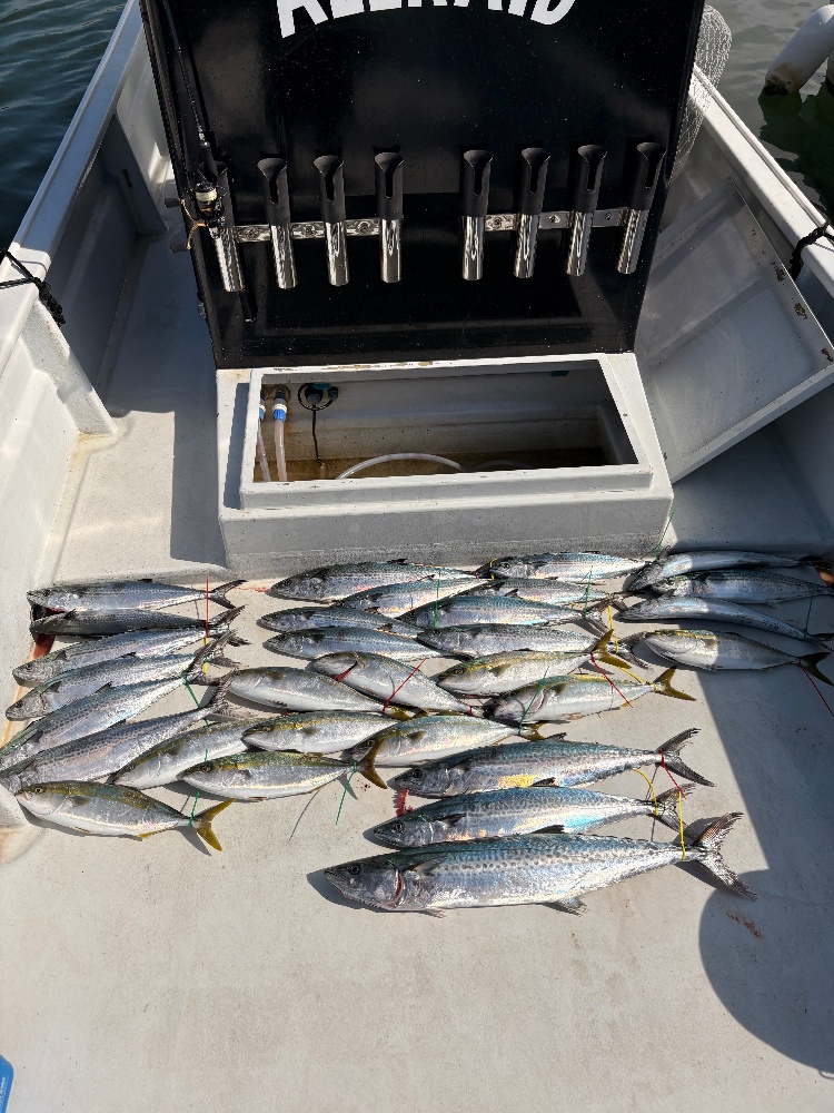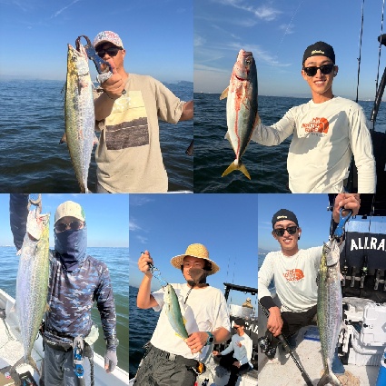 サワラキャスティング今日はバレが多発!本当に良くバレました😂それでもツバス、シイラ、サゴシ大中小がしっかり釣れてくれて、ナイスサイズのサワラも登場!釣り上げたゲストさんとハイタッチ🤚サ族好調キープ中です!体にサワラの匂いが染み付いてきました😂今日はご乗船ありがとうございました🙇差し入れありがとうございます😊