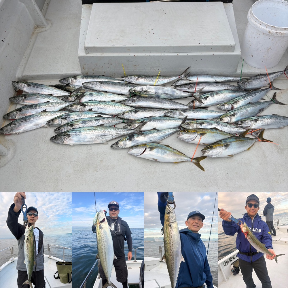 サワラキャスティング最初はポロポロ釣れる展開でしたが、サ族の群れを発見したら、連続ヒット!ただ、本日もバレ多発しました😂デカそうな奴もフックアウト!くーーー😭それでも皆さんバッチリ、サゴシ大中小GET!やっぱり、ルアーで当たりの数がかなり違ったのでその日の当たりパターンを見つけると釣果に繋がりますね!でも、今日はこのルアーで釣る!って決めて投げ倒す釣りも大好きです😏ご乗船ありがとうございました!差し入れありがとうございます😊