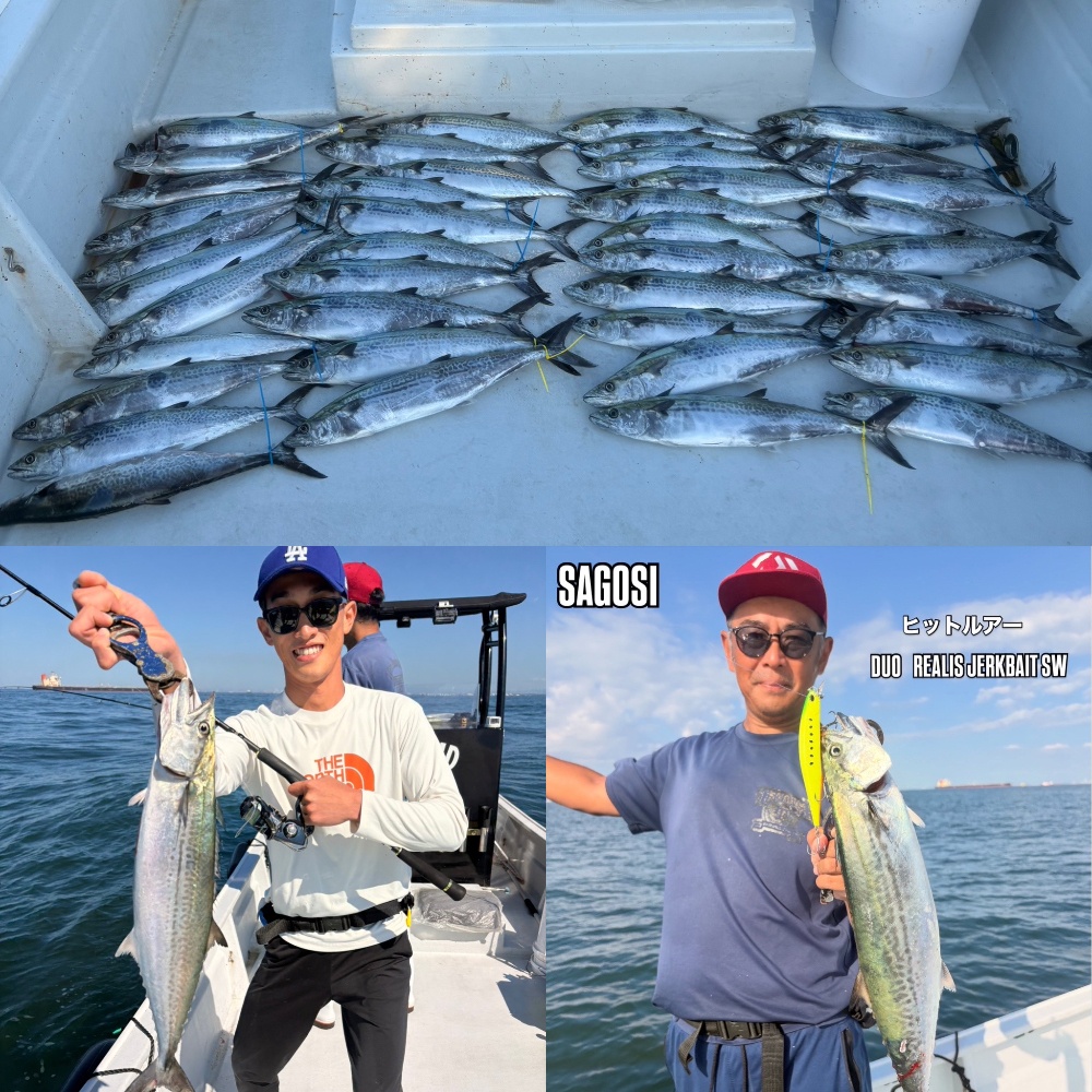 サワラキャスティング 午前は強風の為中止。午後は風がおさまったので出船!ポイントに着くと、1投目からヒットー🙌そこから当たりが連発!またまたタモ入れ大忙し!サワラキャスティング初挑戦の方もボコボコ釣られてました🤩今日もクーラー満タン!ご乗船ありがとうございました🙇