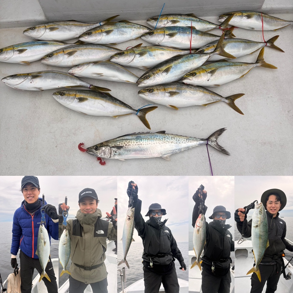 張り切ってスタートからサ族を狙いましたが撃沈🥲ただ今日はツバス祭り開催中でした!初挑戦のも沢山釣れて、全員安打!お土産は沢山できたので、再度サ族狙いへ🚢魚探には反応でまくりでしたが食ってこない😂そんな中、ヒットしましたがバレてしまいました。しかし、最後の最後でヒットー!サゴシGET!やったー!釣られた方と歓喜のハイタッチ!なんとかサ族の顔を見ることができました🙇厳しい中ありがとうございました❗️差し入れありがとうございます😊