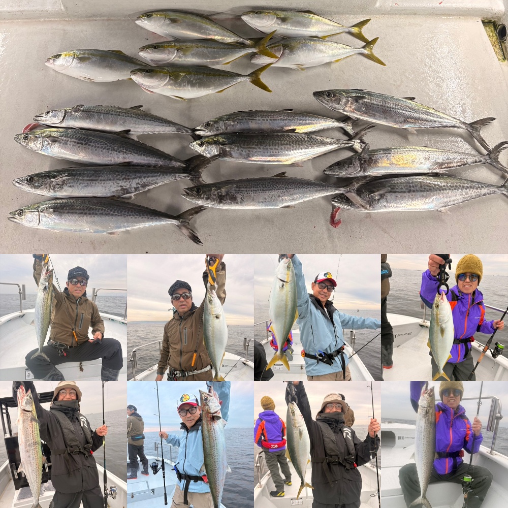 サワラキャスティング 午後ポイントに到着してすぐ女性アングラーさんにヒット!早い!バッチリサゴシGET👌そして今日は女性アングラーさん達が絶好調!男性陣を尻目に当たりが連発!魚達わかってるねー😏もちろん男性陣もバッチリ釣られてましたよ!ツバスも良く釣れましたが、全部、丸々のメタボ君!脂が乗ってそう🤤最後までコンスタントにヒットしてくれました😄ご乗船ありがとうございました🙇