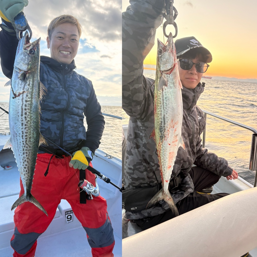 サワラキャスティング 午後魚達が不機嫌で苦労しましが、後半当たりが連発!ただバレも連発!デカいサワラがヒットしましたが船の下に入られラインブレイク😭惜しい!ただサワキャス初挑戦のお二人がサゴシGET!おめでとうございます🤩渋い中ありがとうございました!差し入れありがとうございます😊
