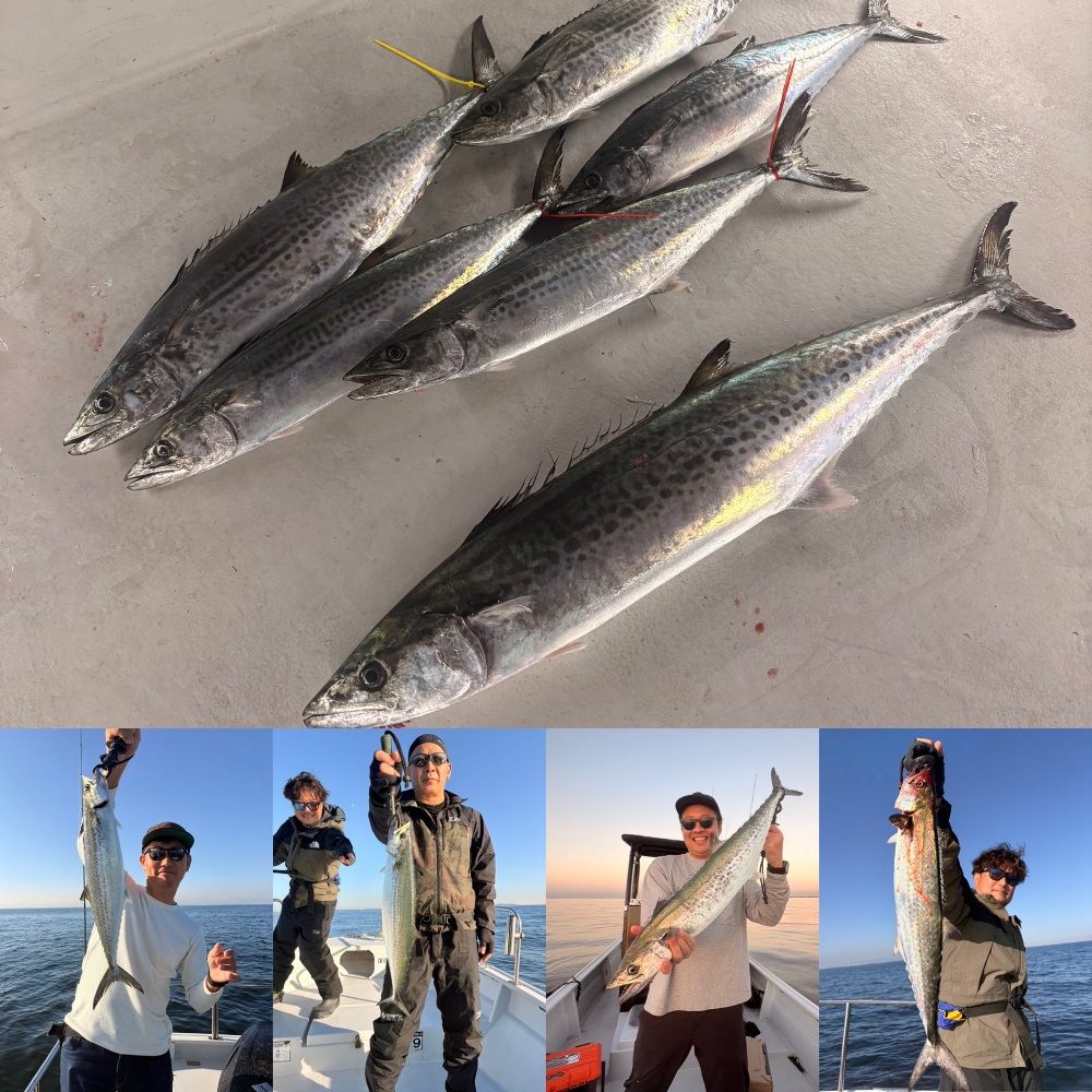 午後はポカポカ陽気!サ族もバレなどもありましたがコンスタントに釣れてくれました!最近ちょっと渋めだからタモ入れちょっと緊張🤣後半、いいサイズヒットー!ドラグジー!スカ!バレてしまいました😭更に同じ方にヒットー!次もデカい!慎重にやり取りしてネットIN!やったー!良型の初サワラGET👏とあるハプニングで片足びしょ濡れでしたが、頑張って釣り上げて下さいました🥹全員安打できてホッとしました!ご乗船ありがとうございました!差し入れありがとうございます😊