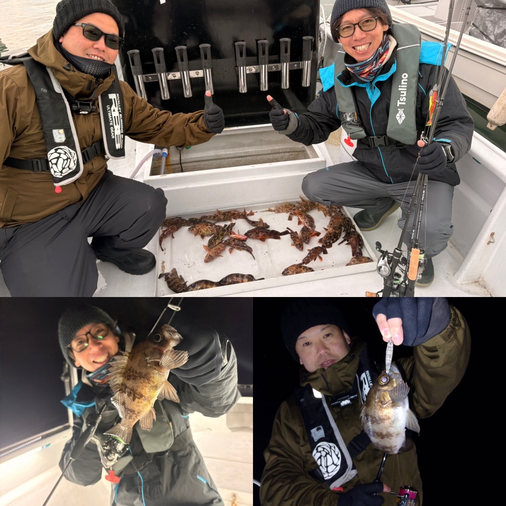 暗い時間に出船してまずは根魚狙い!風が強かったので風裏勝負でしたが、カサゴ君達はめちゃくちゃ元気で当たりまくり🙌小型、お持ち帰り分以外はリリース!メバルも狙ってみるとしっかり釣れてくれました!プラグでもヒット!メバルも始まりましたよー😏明るくなって、フラットフィッシュを狙ってみましたがヒットならず🥲寒い中ありがとうございました🙇