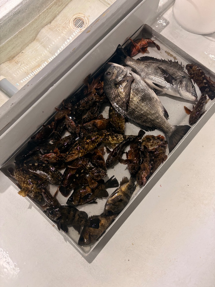 根魚便今日もカサゴは元気!良く釣れました!メバルは居留守気味でちょっと渋い展開でしたが頑張ってキャストしていただき、良型GET!更に今日はクロダイがヒット!しかも50㎝UP。ライトタックルで釣るので、ハラハラドキドキのやり取りで楽しそう🤩水温が上がってきて色々な魚が動きだしてきましたよー!ご乗船ありがとうございました!差し入れありがとうございます😊