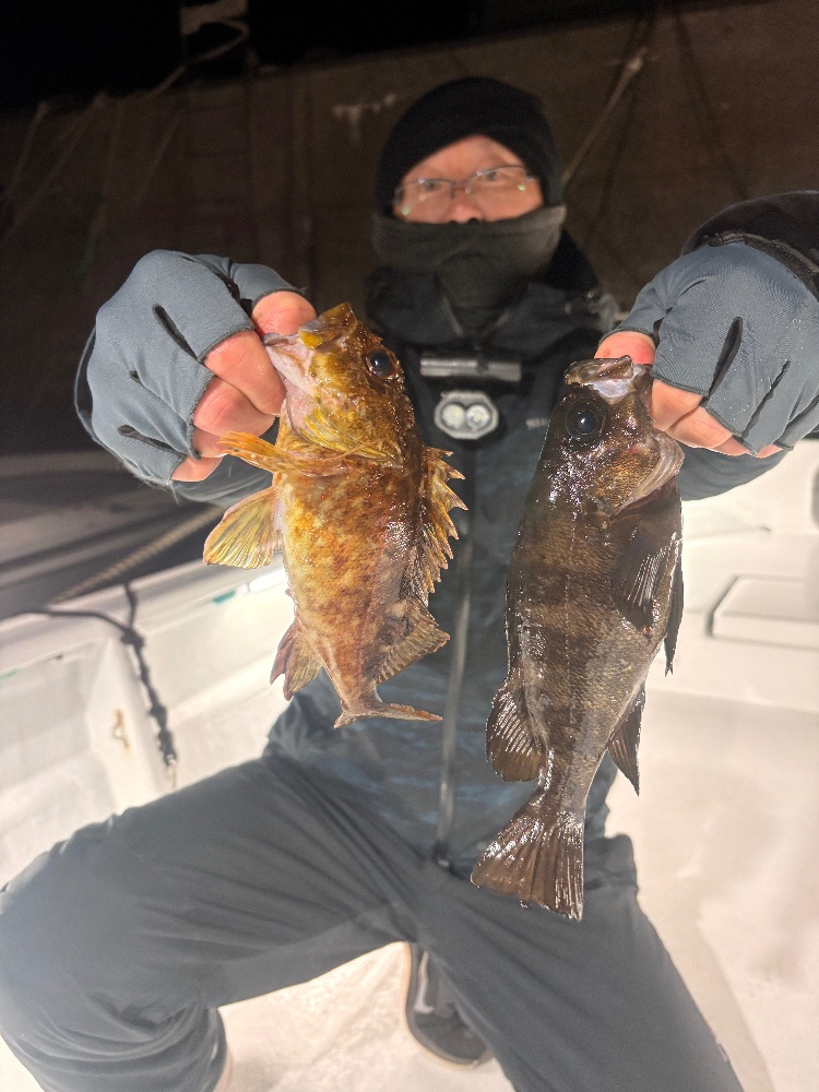 根魚便強風続きだったので、久しぶりの出船!うーむ!激渋!カサゴも今日は元気が無い😅ポイントを周り、皆さんのテクニックでなんとか本命メバルを数匹、カサゴもポロポロヒット!(全てリリース。全員の写真は撮れませんでした😅) 渋い中、ありがとうございました!差し入れありがとうございます😊